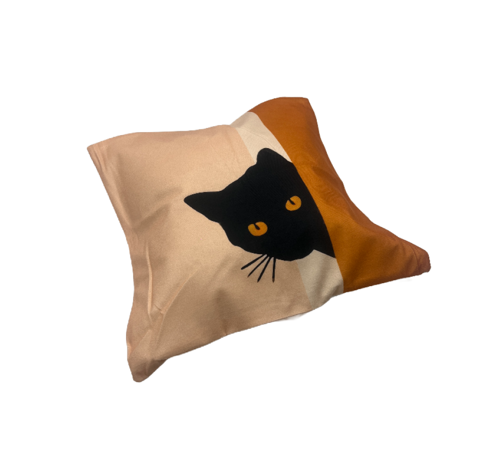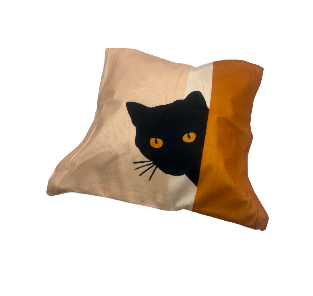 Cute and quirky black cat pillow cover, made of soft and comfortable linen fabric, perfect for the living room and bedroom sofa.