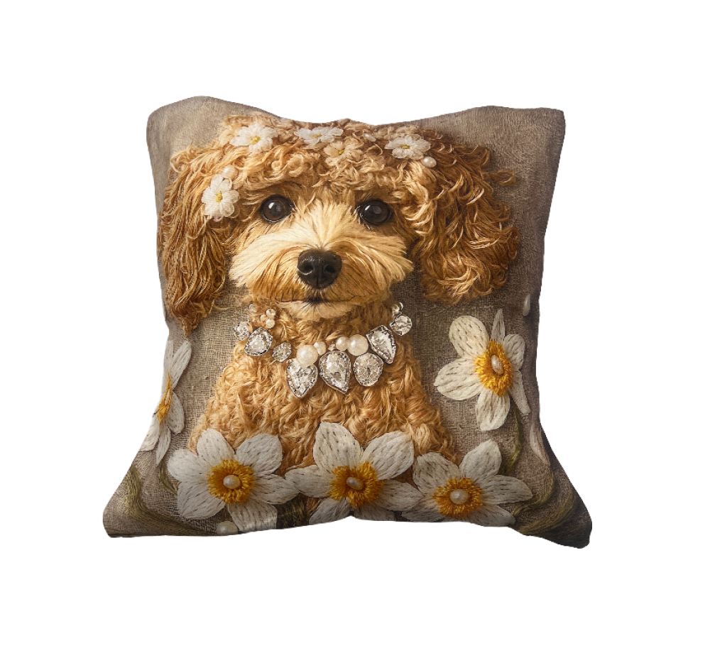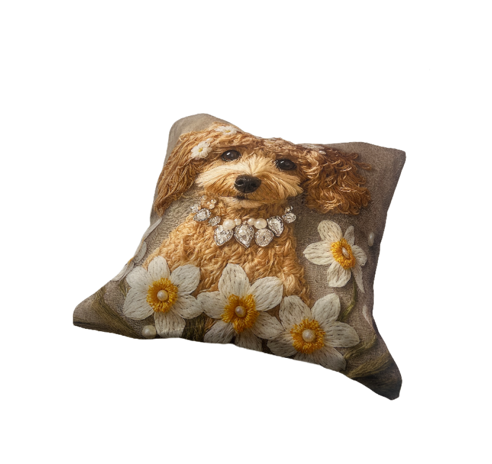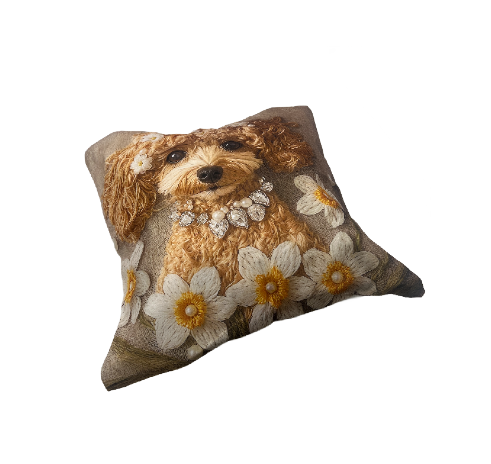 Cute Flower and Puppy 2D Digital Printed Imitation Embroidery Skin-Friendly Short Plush Living Room Sofa Decor Pillow Cover